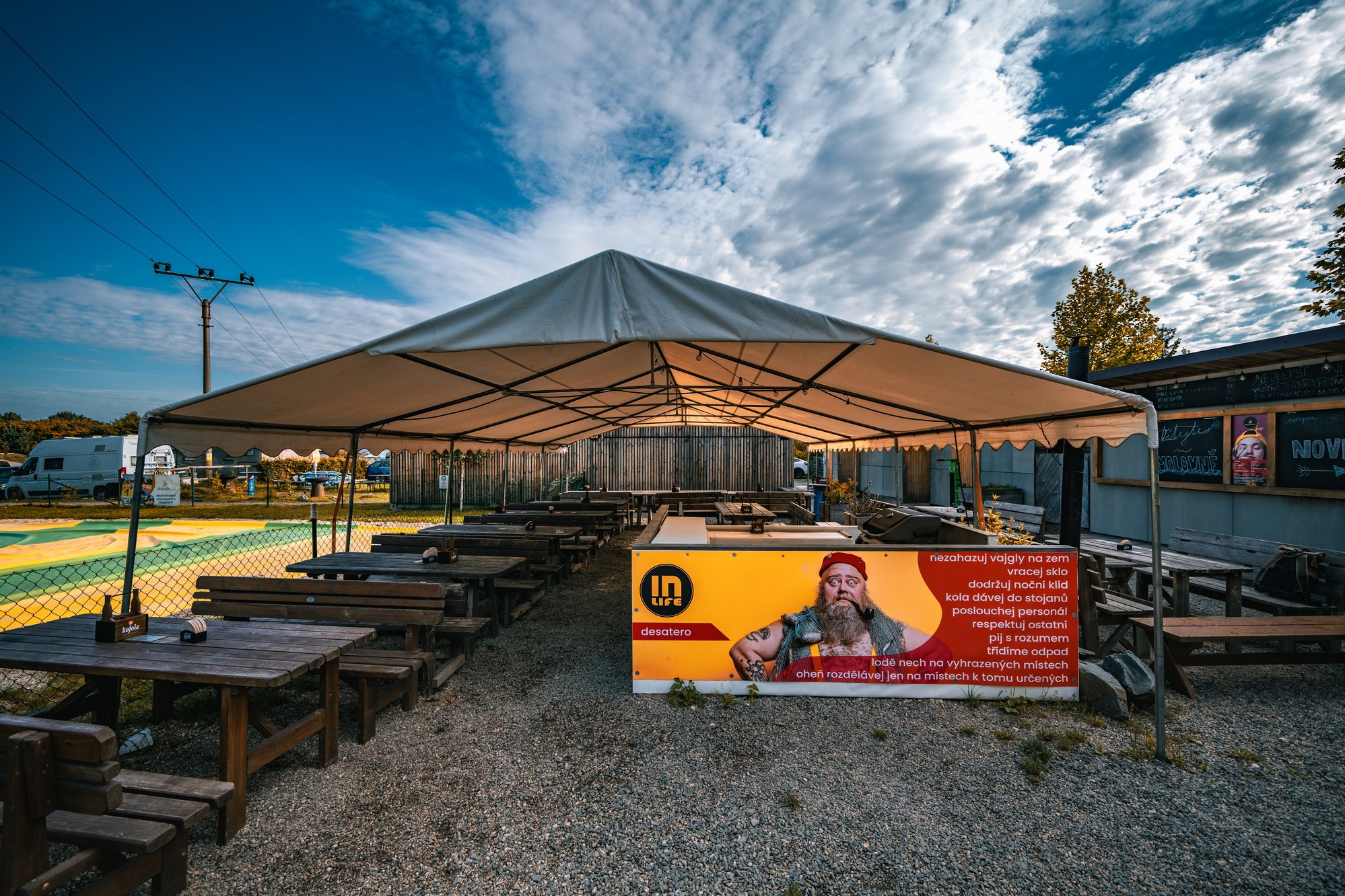 Výhoda: Bezpečný uzavřený areál, catering v pergole zdarma (při odběru jídla).