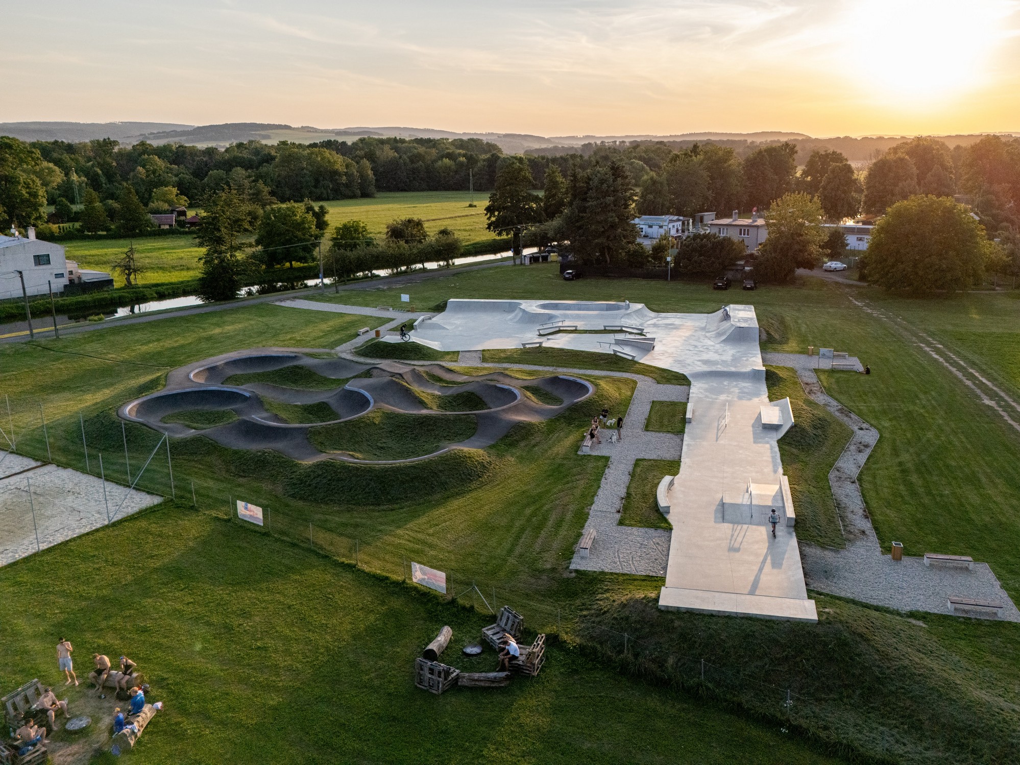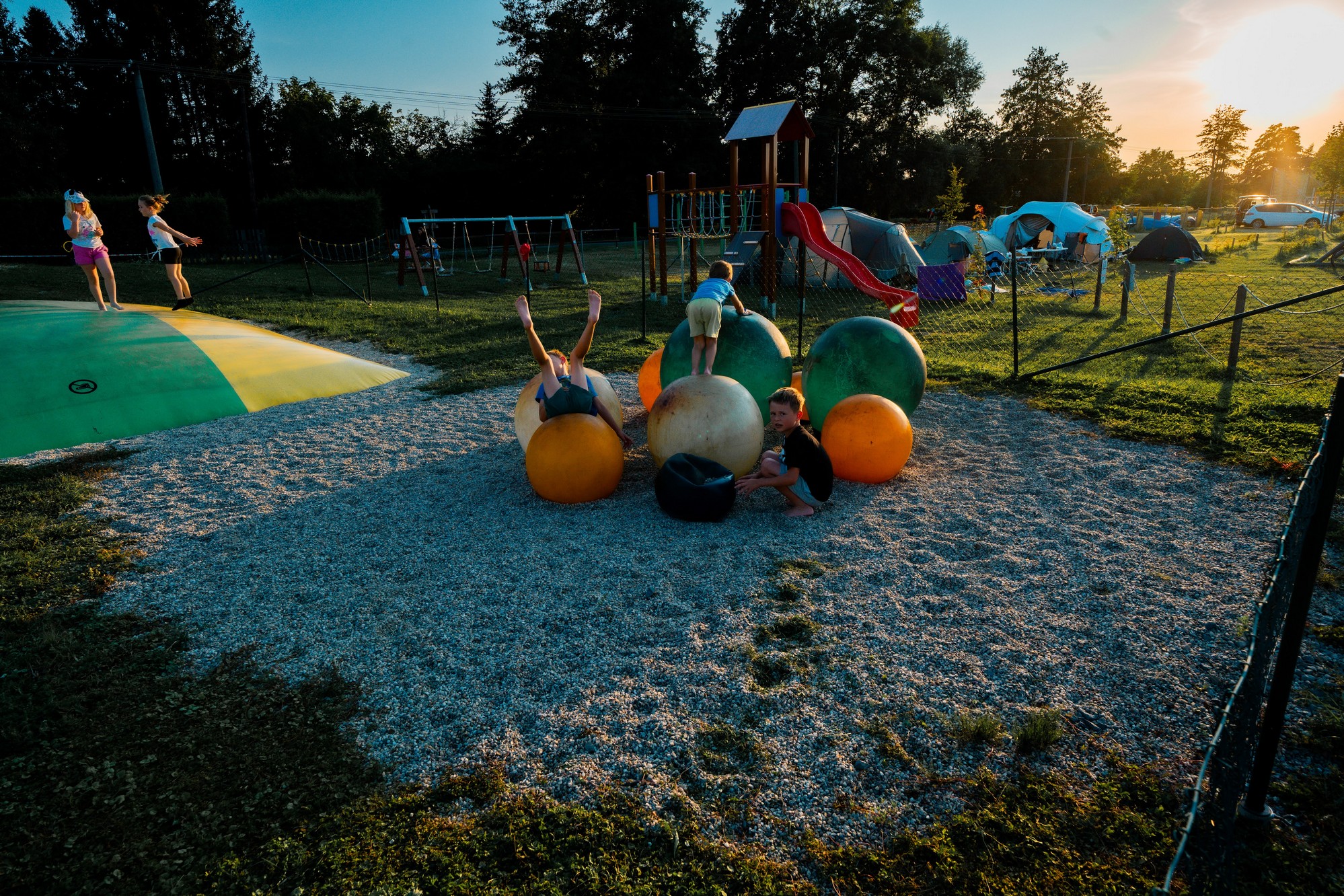 Pro děti: Obří nafukovací trampolíny, unikátní vodní svět s mlýnky a bezpečný areál bez aut.